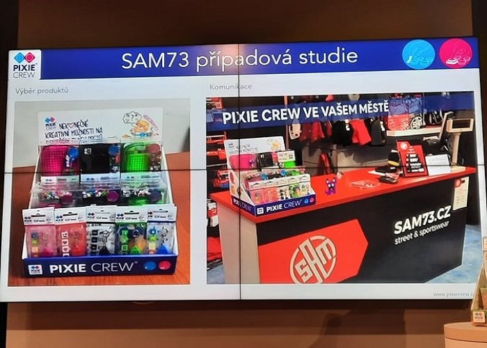 Ukázal také případovou studii, kdy produkty umístili u obchodního partnera SAM73, který prodává oblečení. Na 20 pilotních prodejen umístili displej s produkty přímo u pokladny a nabídli také další produkty k dispozici pro hraní. Po 3 týdnech dosáhli 60 % odprodejů. Díky úspěšnému projektu budou teď zalistováni na více než 90 prodejnách.