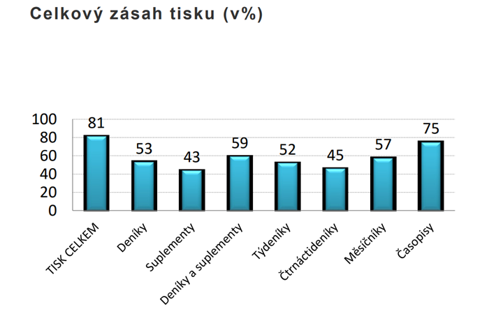 Čtenost tištěných titulů je v české populaci stále vysoká, alespoň nějaký tištěný titul si přečte 81 % populace ve věku 12-79 let. Je to o dva procentní body méně než ve stejném období loni, což je ale pokles v rámci statistické chyby. Ukazují to nové výsledky výzkumu čtenosti Media projektu za období od 1. října 2022 do letošního září.