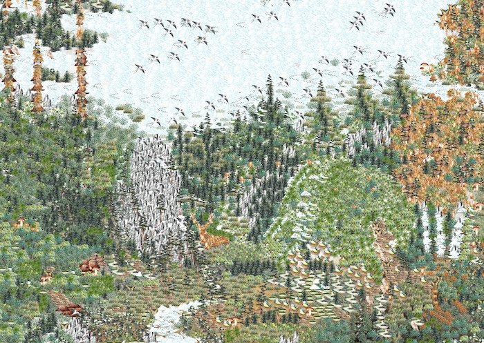 Výsledný obraz se skládá z téměř 18 tisíc přírodních prvků a představuje formu generativního umění s ekologickým přesahem. Z dálky působí jako typická česká krajina. Při bližším pohledu obsahuje množství drobných obrázků, z nichž je dílo složené. Jednotlivé elementy jsou připravené zjednodušenou malbou štětcem.