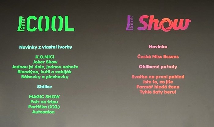 Tři nové seriály pro hlavní vysílací čas, zábavná show, svatební reality show, talkshow o vztazích i volba královny krásy. To je výčet nových pořadů televizní skupiny Prima pro letošní podzimní sezónu. Prima své letošní podzimní programové schéma představila na úterní odpolední tiskové konferenci v areálu pražské Hostivařské přehrady. Chystaným programem, promovaným pod sloganem #životzalitýsluncem, provedli generální ředitel Marek Singer a programový ředitel Roman Mrázek.