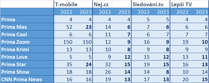 Na rozdíl od O2 jsme se s některými operátory dohodli na umístění našich kanálů na lepší programové pozice.