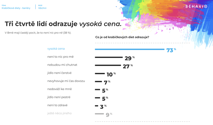 Výzkum identifikoval hlavní bariéry, které zákazníkům brání v tom, přihlásit se k pravidelnému rozvozu jídla. 73 % lidí odrazuje údajná vysoká cena. Významnou překážkou je také obava, že si nepochutnají, kterou sdílí 27 % obyvatel měst.