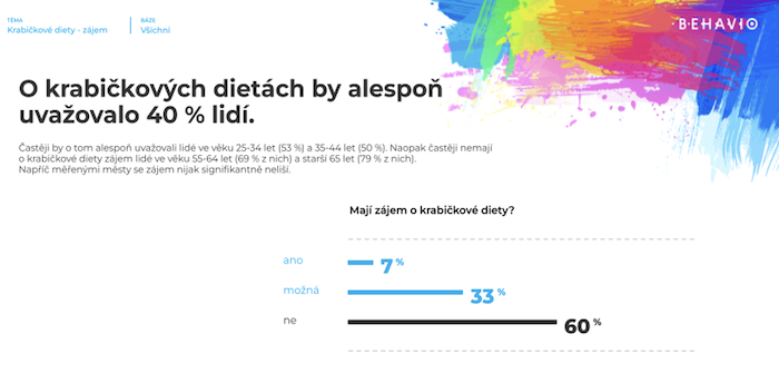Největší potenciál je v často nenaplněných zákaznických potřebách: cítit se po jídle dobře (důležité pro 91 % lidí) a jíst pestrou stravu (důležité pro 78 % lidí). Obě tyto potřeby jsou velmi silné a velkému počtu lidí se nedaří je při vlastním stravování naplnit. Když jim toto nabídne právě krabičková dieta, má větší šanci, že zaujme.