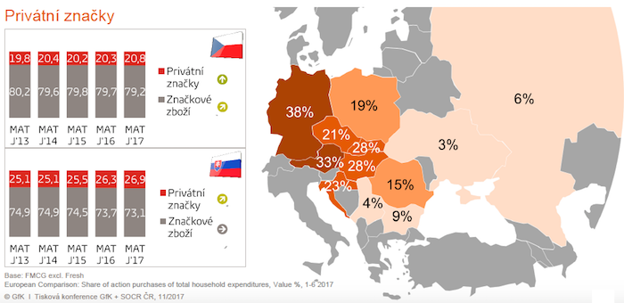 Privátní značky obchodních řetězců rostou rychleji než značkové zboží. „Zákazníci si často ani neuvědomují, že kupují privátní značky. Ale jejich růst je celoevropským fenoménem,“ popsal Tomáš Drtina. V Německu tvoří privátní značky již 38% podíl z nákupů, v České republice zatím 21 %, potenciál dalšího nárůstu zde tedy stále je. Stále větší zájem je rovněž o exkluzivní privátní značky, které nabízejí vysokou kvalitu za příznivou cenu.