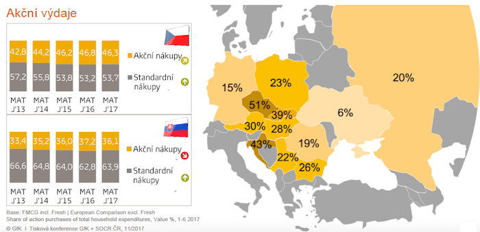 Stále rostoucí trend nákupů v promocích, v nichž je Česká republika v celoevropském srovnání opravdovou velmocí, se letos poprvé zastavil. „I nadále chtějí Češi nakupovat výhodně, ale dochází zde k posunu směrem ke kvalitě,“ doplnil Tomáš Drtina. Význam akcí a podpora prodeje přímo na prodejně klesá s vyšším dosaženým vzděláním.