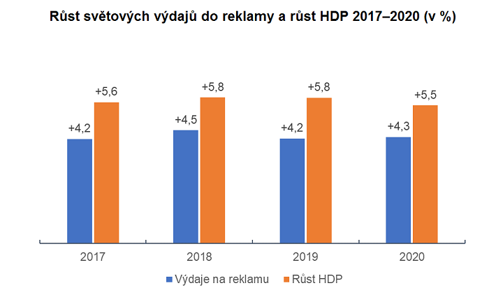 Televize a rádio mají mezi lety 2017 a 2020 růst o jedno procento ročně a venkovní reklama o tři procenta ročně. Kinoreklama však díky investicím do nových pláten, úspěšným filmovým franšízám a lepšímu mezinárodnímu marketingu roste o 16 % ročně. Hlavní hnací silou je zvyšující se poptávka v Číně, která loni předstihla Spojené státy a stala se v oblasti kinoreklamy největším trhem.