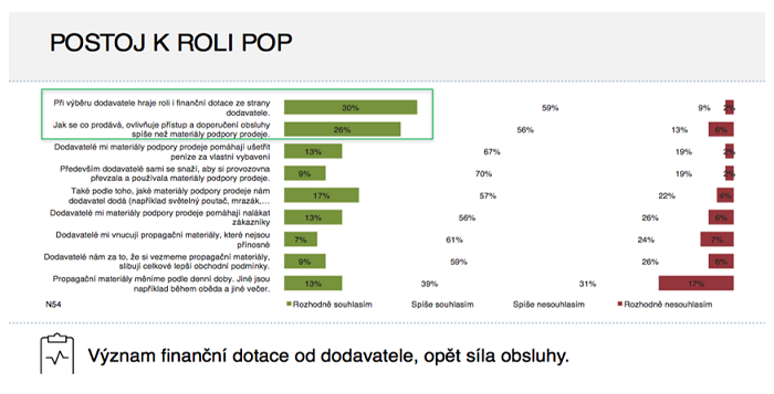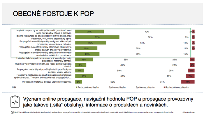 Přidanou hodnotu vidí 87 % provozovatelů obecně v POP médiích, která dokážou hosty navigovat k produktům v nabídce, 85 % z nich si myslí, že mají upozorňovat na novinky, a podle 80 % by měla informovat o prodeji propagovaných značek v provozovně.