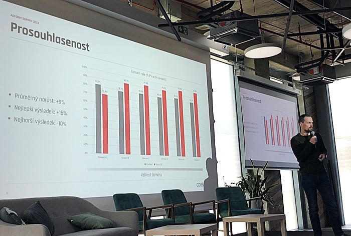 Zavedení lišt, které uživatele vyzývají k udělení souhlasů s daty o jejich chování na internetu výměnou za konzumaci obsahu zdarma, nebo v případě jejich nesouhlasu k zaplacení určité peněžní částky, zvýšilo podle prvních dat sdružení Czech Publishers Exchange (CPEx) míru prosouhlasenosti v průměru o 9 %. Rozdíly jsou ale mezi jednotlivými doménami. Čím větší doména, tím je nárůst získaných souhlasů vyšší, uvedl na konferenci Adform Summit 2024 Lukáš Šmol, ředitel Czech Publishers Exchange.