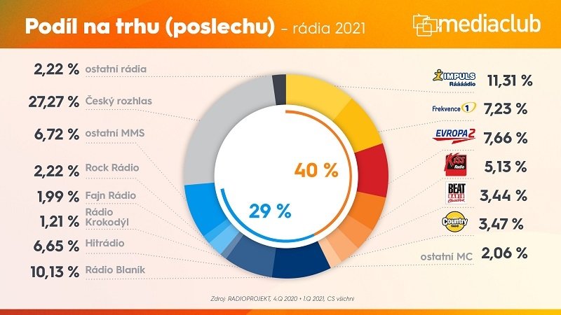 Hlavní důvod je ten, že od doby, kdy jsme převzali rádia Active (Evropa 2, Frekvence 1, Bonton aj., pozn. red.), máme velmi rychle vyprodaný prostor. Reklamu prodáváme v čase, obvykle jsme mohli prostor prodávat třeba až do 25. v měsíci, ale nám se teď děje to, že už třetí den v měsíci jsme vyprodaní. Máme vyprodanou Evropu 2, Kiss a Impuls, museli jsme vypínat už i Country nebo Frekvenci 1. Způsobuje nám to řadu problémů, ale nejenom nám, především našim klientům, kteří mají zájem o propagaci svých produktů, služeb a bohužel jsme je museli odmítnout. Rádiový trh se začíná probouzet. Za první půlrok letošního roku u nás inzerovalo 1 917 klientů, přičemž z toho bylo 581 zcela nových. To je 31% nárůst nového byznysu v rádiích. Platí to napříč různými segmenty a regiony. A to je nejzásadnější důvod zaplněnosti reklamních breaků.