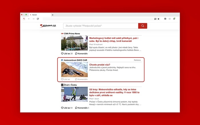 Společnost Seznam.cz rozšířila inventory nativní reklamy dostupné v RTB. Nově ji teď lze nakoupit i na domovské stránce Seznam.cz. Domovská stránka se tak připojuje k přibližně 150 dalším webům, kde je nativní reklama k dispozici.