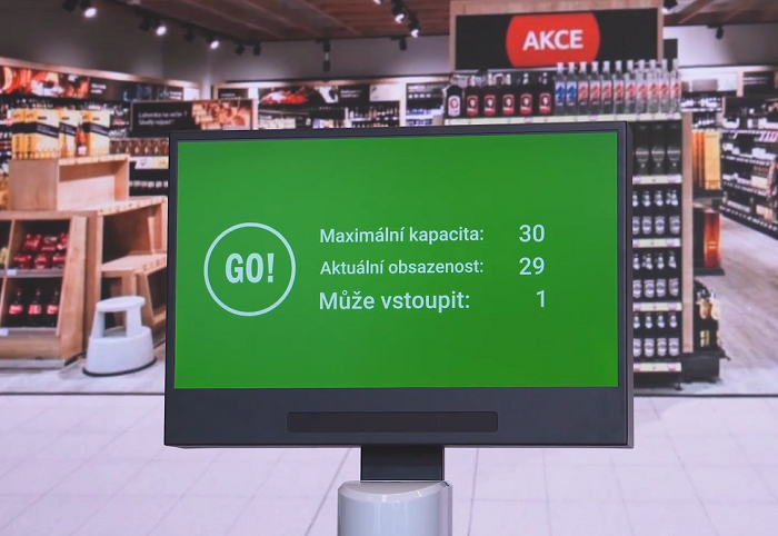 I u nás přicházejí firmy s podobnými technologickými nápady. AV Media představila na semináři svůj semafor pro určení obsazenosti prodejny. Pokud je v obchodě správný počet zákazníků, svítí obrazovka přístroje zeleně, následně se zbarví oranžově, pokud se prodejna zaplňuje, a když je plno, objeví se červená barva. „Aby zákazníci neodešli, dá se displej využít pro různá sdělení, lze ho ozvučit a poskytnout nějakou zábavu, abychom upoutali zákazníkovu pozornost. Navíc je ke stojanu připojena hygienická stanice, abychom vyhověli menším prodejnám a nemusely tam mít stojany dva,“ popsal další výhody semaforu Martin Zikmunda, obchodní konzultant AV Media Systems.