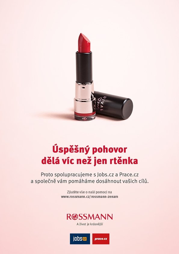 Vizuální stránka kampaně působí minimalisticky a na první pohled produktově. Ve skutečnosti však komunikuje přesný opak – tedy to, že na získání nové práce či zvládnutí pohovoru je třeba víc než jen kosmetické produkty.