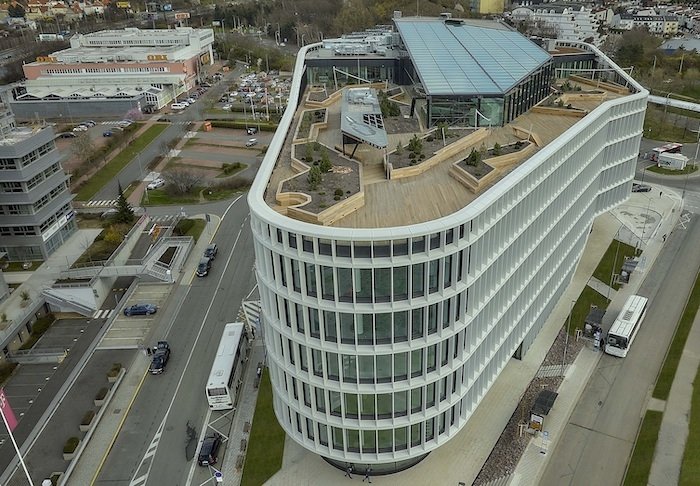Součástí budovy je i střešní pobytová terasa se zelení, relax zónou, wifi pokrytím a výhledem na Prahu a Krčský les. Objekt je svým vybavením rovněž připraven na aktuální a predikovaný nárůst elektromobility nadstandardní kapacitou nabíjecích stanic.