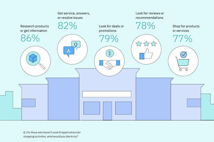 Podle studie by více než polovina respondentů (59 %) uvítala technologické vylepšení svého nákupního zážitku pomocí umělé inteligence. Až čtyři z pěti dotázaných, kteří AI ještě nikdy nevyužili, projevili zájem ji vyzkoušet. Nejvíce z nich by tak chtělo získávat informace o produktech (86 %), pokládat otázky či řešit nastalé problémy (82 %), vyhledávat nabídky a akce (79 %) či zákaznické recenze (78 %). Žádané jsou rovněž personalizované a cílené nabídky, přičemž polovina spotřebitelů (52 %) by chtělo dostávat od značek a obchodníků jen ty informace, které jsou pro ně relevantní.