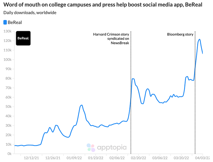 Podle dat společnosti Data.ai se stala BeReal v prvním čtvrtletí letošního roku čtvrtou nejstahovanější aplikací v USA, Velké Británii a Francii, a to za Instagramem, Snapchatem a Pinterestem. Zájem o ní však roste například i ve Španělsku, Dánsku nebo Mexiku. Přitahuje zejména zástupce generace Z ve věku od 16 do 24 let. Podle společnosti Apptopia byla již nainstalována na 7,5 milionu zařízení a od začátku roku počet stažení vzrostl o 315 %. Počet denních uživatelů se pohybuje na úrovni 2,9 milionů.