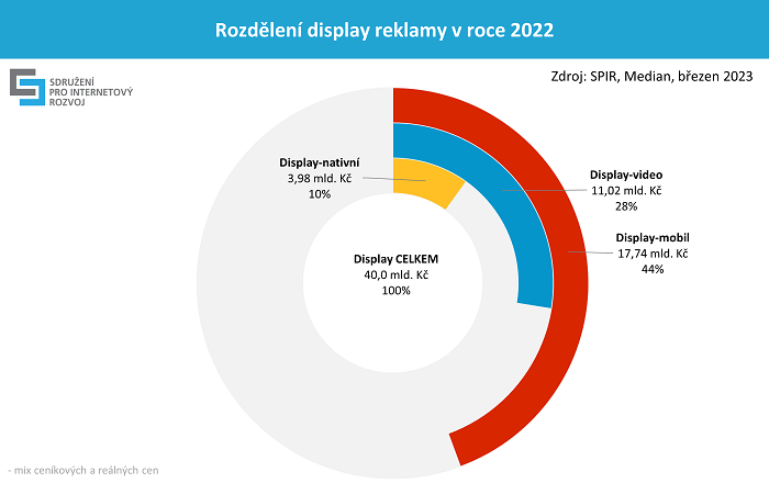 V roce 2022 dosáhly výdaje do online reklamy téměř 57 miliard korun, což bylo meziročně o 18 % víc. Jde o součet ceníkových a čistých cen. Na růstu se v absolutních hodnotách nejvíce podílela display reklama (+23 %) a reklama ve vyhledávání (+9 %). Z pohledu způsobu obchodování inzertního prostoru rostl programatický nákup display reklamy o 35 %. Očekávání pro rok 2023 je 7% růst investic do online reklamy na úrovni 60,8 mld. Kč. Údaje pocházejí z výzkumu inzertních výkonů internetové reklamy, který pro Sdružení pro internetový rozvoj (SPIR) realizuje agentura Median.