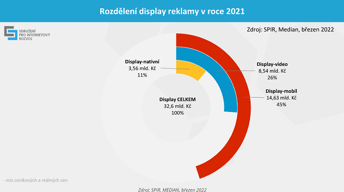 Podíl mobilní display reklamy (reklamy na mobilních zařízeních a reklamy cílené na mobilní zařízení) z celkové display reklamy byl 45 % (14,6 mld. Kč), meziročně vzrostla o 45 % a pro letošní rok je u ní odhadován 15% růst.