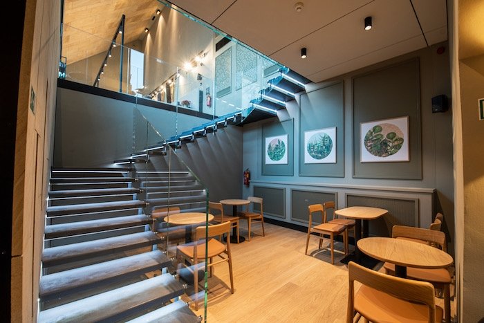 Moderně pojatý designový interiér, vyvedený ve světlých přírodních barvách, nabídne na rozloze 302 čtverečních metrů 54 míst k sezení, dalších 72 míst pak poskytne letní zahrádka. Součástí kavárny jsou rovněž digitální menuboardy, které se budou postupně rozšiřovat i do dalších poboček.