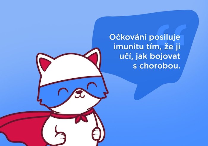 Hrdiny kampaně jsou běžní lidé a kočka Micka, která z České republiky vyhání hlavního padoucha, kterým je PES (Protiepidemický systém ČR). Díky postavě Micky a jejímu „kočkování“ se kampaň stává přístupnější – Micka provází čtenáře webem o očkování a přibližuje aktuální dění. Kočičí maskot má prostor i na sociálních sítích nebo v offline světě. Hodí se například jako milý motiv na nano roušky nebo plátěnky. Jako tvář (k)očkování má Micka vzbuzovat radost a chuť trpké období společně překonat.