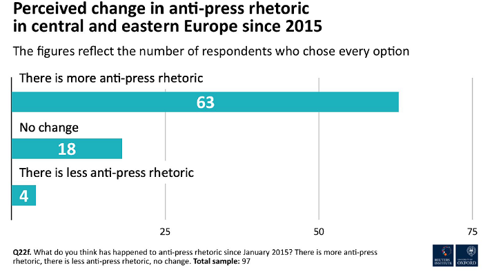 Většina nezávislých novinářů (63 %) ve střední a východní Evropě sklidila od politiků kritiku za svou novinařinu. Útoky ale nevycházejí jen od politiků, ale také od konkurenčních novinářů, kteří pracují pro provládní média. Vyplývá to z nové studie Fighting Words: Journalism Under Assault in Central and Eastern Europe od Reuters Institute, která se zaměřila na postavení nezávislých novinářů ve střední a východní Evropě.