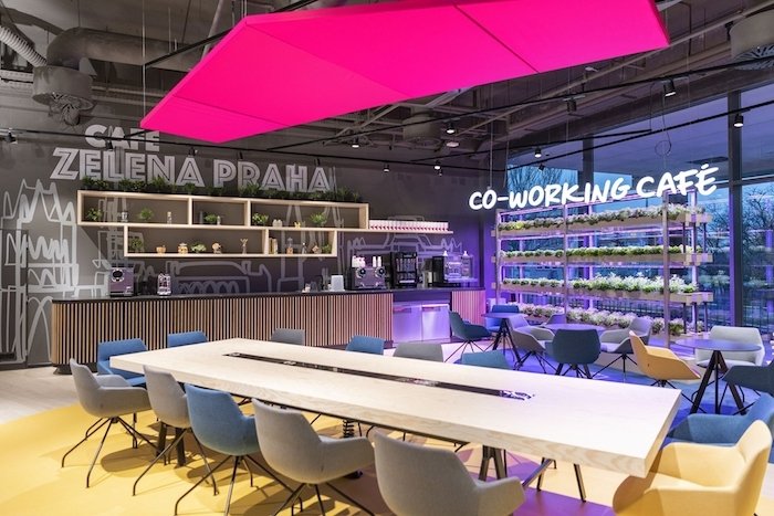Provoz Magenta Experince Center klade důraz na ekologii, recyklaci, udržitelnost i podporu mladých tuzemských firem. Interiér je vyplněn zelení. Česká společnost Future Farming se zde postarala o vybudování aquaponické farmy. O živé zelené stropy a vertikální zahrady pečuje další tuzemská firma – Čarokvěty.
