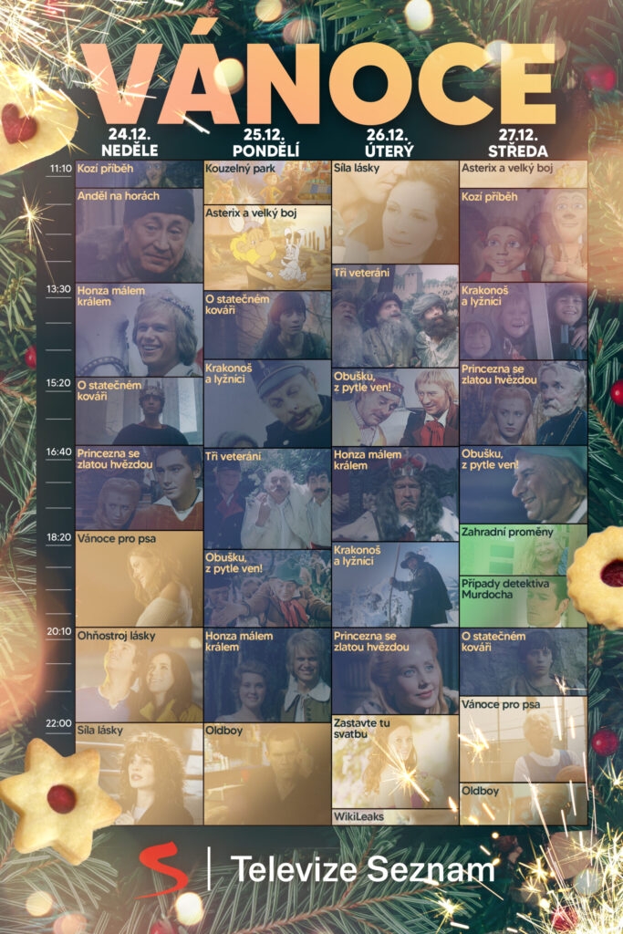 „Letošní Vánoce na Televizi Seznam budou nejen o tradičních českých pohádkách a filmech, ale i o zahraničních komediálních titulech. Věříme, že tak nabídneme veselý i kouzelný vánoční program pro celou rodinu,“ říká Ivan Mikula, ředitel Televize Seznam. K nim patří například Kněz je poděs, Síla lásky, Ohňostroj lásky, 50/50 či komedie Arthur.