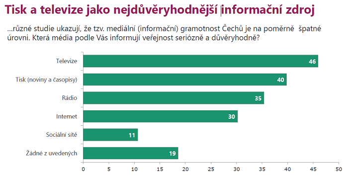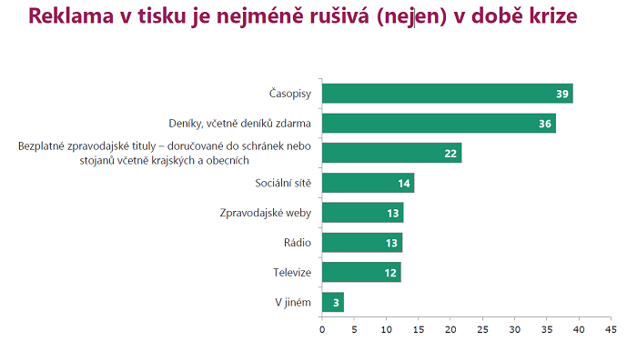 - Reklamě na tradičních mediálních platformách, jako je tisk, většina dotazovaných stále důvěřuje.