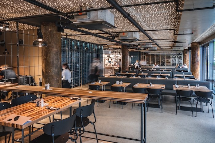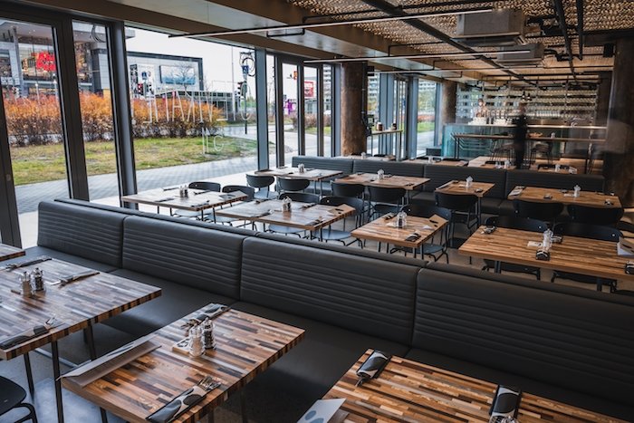 Interiér restaurace sází na industriální styl a barevnou kombinaci antracitové a hnědé. Do vnitřní části restaurace se vejde 160 hostů, koncem ledna přibude ještě celoročně zastřešená zahrada s kapacitou 50 míst. Design restaurace má na svědomí architekt Václav Červenka.