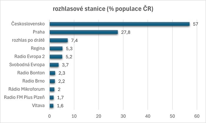 Mezi rozhlasovými stanicemi měla nejsilnější postavení stanice Československo. Ta v prosinci 1989 nahradila tehdejší stanici Hvězda. Neměla ale dlouhého trvání, se vznikem samostatného českého státu od 1.1. 1993 se přeměnila na Radiožurnál.