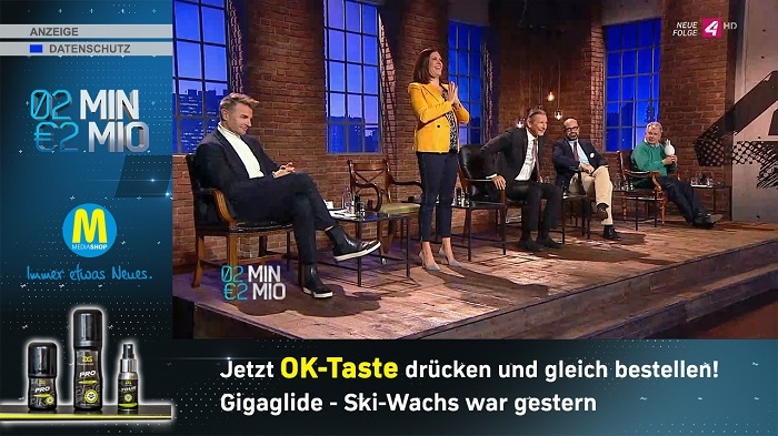 Rakouská televize ProSiebenSat.1 Puls 4, která je dceřinou televizní stanicí německé ProSiebenSat.1, vyzkoušela v těchto dnech poprvé formát nákupní televizní reklamy (shoppable TV). Ten přenáší diváky z televize přímo do online obchodu, kde si mohou produkt z vysílaného televizního programu objednat přímo domů. Televizní kanál konkrétně spolupracoval s online obchodem MediaShop.