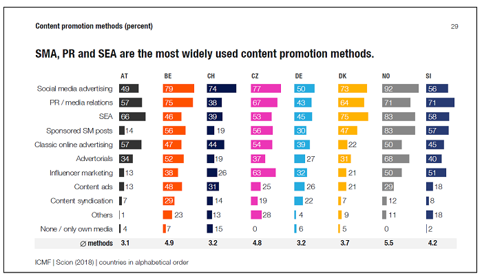 Valná většina dotázaných se shodla na tom, že placená podpora firemního obsahu je naprosto nezbytná. Myslí si to 90 % norských respondentů, 89 % německých a rakouských, 86 % slovinských a 84 % Čechů, kteří jej nejvíce promují přes sociální média, PR a influencery.