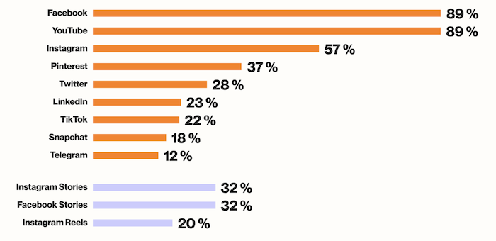 Z jednotlivých formátů se prosazují Instagram Stories (32 %), Facebook Stories (32 %) a Instagram Reels (20 %).