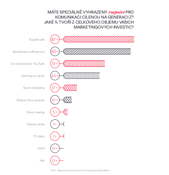 Přesto v praxi nevyužívá žádnou specifickou komunikační strategii celých 79 % dotázaných. Z toho polovina marketingově na Gen Z necílí a ani to neplánuje, zatímco necelá třetina to alespoň zvažuje. Třetina značek na nejmladší generaci necílí, protože pro ni nemá produkt, pro dalších 18 % je to minoritní skupina, a 15 % si dokonce myslí, že generace Z nemá dostatečnou kupní sílu.