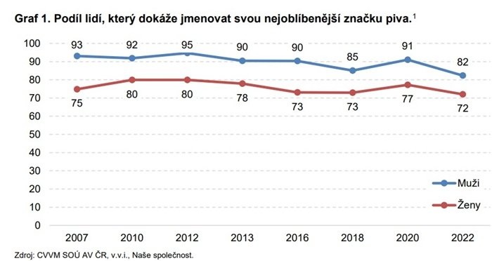 Osm z deseti mužů a sedm z deseti žen dokáže jmenovat oblíbenou značku piva. Ukazuje to výzkumný projekt „Pivo a hospody v české společnosti“ od CVVM.