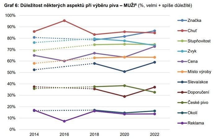 Preference při výběru piva jsou u českých konzumentů dlouhodobě poměrně vyprofilované, obzvláště to platí pro jejich mužskou část. Mezi lidmi, kteří alespoň někdy pivo pili, dokázalo v období před pandemií C-19 svou oblíbenou značku jmenovat devět z deseti mužů a tři čtvrtiny žen, v roce 2022 to bylo 82 % mužů a 72 % žen. Více než třetina konzumentů a konzumentek piva se pokaždé nebo alespoň téměř pokaždé zajímají o to, jakou pijí značku nebo typ piva; další téměř polovina mužů a čtvrtina žen se o to zajímají většinou.