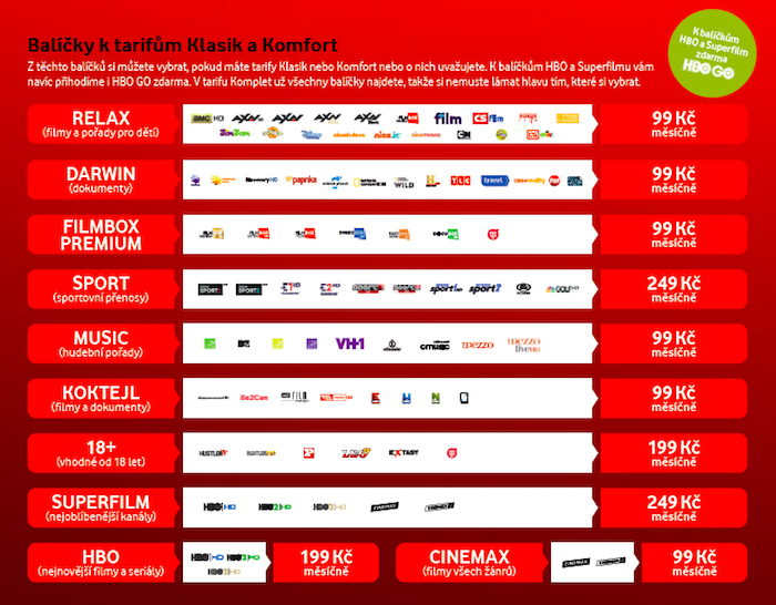 Od 24. března Vodafone navíc spustí automaticky a zdarma rozšířenou televizní nabídku, obsahující dětské stanice, jako je NickToons, Nick Jr., Nickelodeon, Minimax, JimJam, Disney Channel, Duck TV nebo Cartoon Network. Pro dospělé čekají dokumenty a sportovní programy včetně prémiových kanálů Filmbox. Rozšířená nabídka zdarma bude platit do 14. dubna.