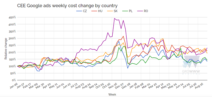 V České republice rostly výdaje na reklamu v e-commerce během prvních osmi měsíců letošního roku meziročně o 53 procent. V regionu střední a východní Evropy to bylo 57 procent. Vyplývá to z údajů Growww Digital o investicích do reklamy od více než 240 středoevropských a východoevropských internetových obchodů. Růst v letošním roce má být patrný zejména v České republice, Slovensku, Rumunsku a Maďarsku.