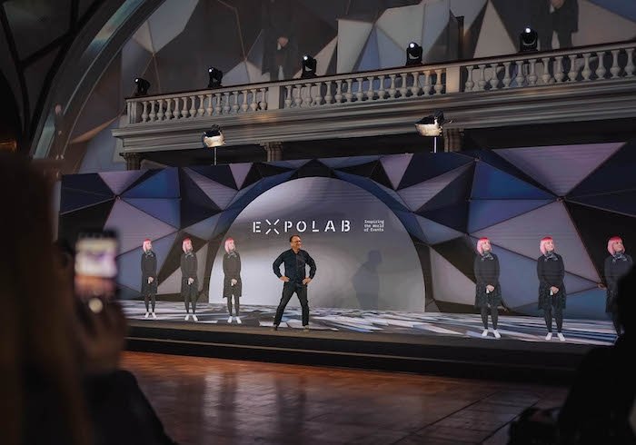 # event # Výstaviště Praha # hybridní event # Expolab # virtuální prostředí # stage design # videomapping # digital copy # Xlab Realtime