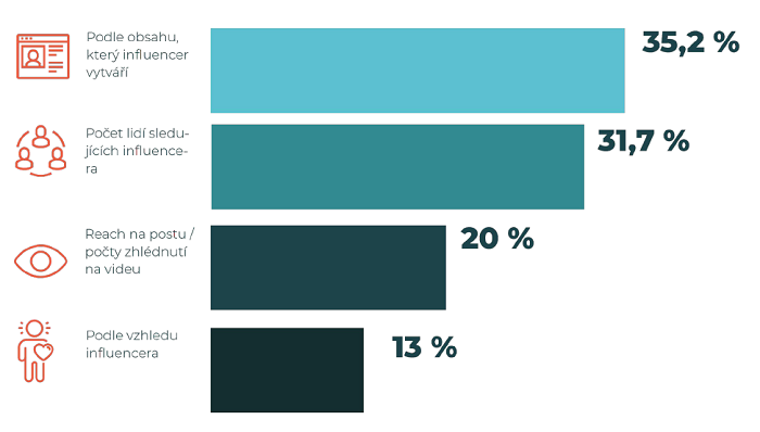 Firmy, které se do spolupráce s influencery pouští, uvádí, že si influencery nejčastěji vybírají podle obsahu, který tvoří. Až druhé místo na pomyslném žebříčku důležitosti mezi zadavateli influencer marketingu obsadilo kritérium počtu sledujících. Na samotném chvostu faktorů, které rozhodují o tom, jaké influencery firmy osloví, zůstal vzhled influencera.