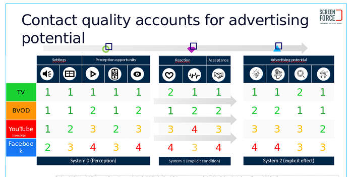 Pro účely studie byli respondenti sledující televizní obsah na vyžádání (BVOD) rovnoměrně rozděleni do dvou skupin – polovina sledovala tento obsah na TV obrazovce a druhá na chytrém mobilním telefonu. To podle realizátorů mohlo mírně zvýhodnit YouTube, který bývá obvykle více sledován na mobilních telefonech než na chytrých televizích. V případě YouTube byly navíc testovány jen nepřeskočitelné reklamy kvůli férovějšímu srovnání s ostatními platformami.