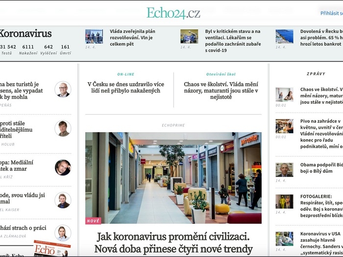 Zpravodajský web Echo24.cz změnil po třech letech svůj design, má odkazovat