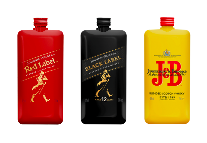 Lahev 0,2 litru je vyrobená z recyklovatelného plastu. Produkty jsou v obchodních řetězcích k dostání od začátku října. Doporučená cena Johnnie Walker Red Label a J&B činí 149 Kč, Johnnie Walker Black Label 259 Kč.