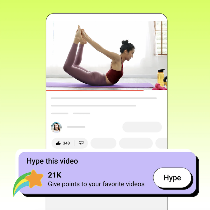 Ke zviditelnění menších kanálů pomůže Hype, jenž představuje zcela nový způsob, jak bude možné tvůrce za jejich obsah ocenit. Díky němu se totiž právě malí a střední tvůrci mohou dostat na týdenní žebříček kanálů, který by jim měl pomoci ke zvětšení dosahu. „Berte to jako rozšíření tlačítka ‚To se mi líbí’ – pokud se vám video opravdu líbí, můžete kliknout na ‚To se mi líbí’ a poté na ‚Hype’, a pomoci tak tvůrci dostat se do žebříčku,“ přibližuje YouTube na svém blogu s tím, že je to trochu podobné funkci Trending. Hype bude nejprve představen v Brazílii, Turecku a na Tchaj-wanu, následně se rozšíří na další trhy.